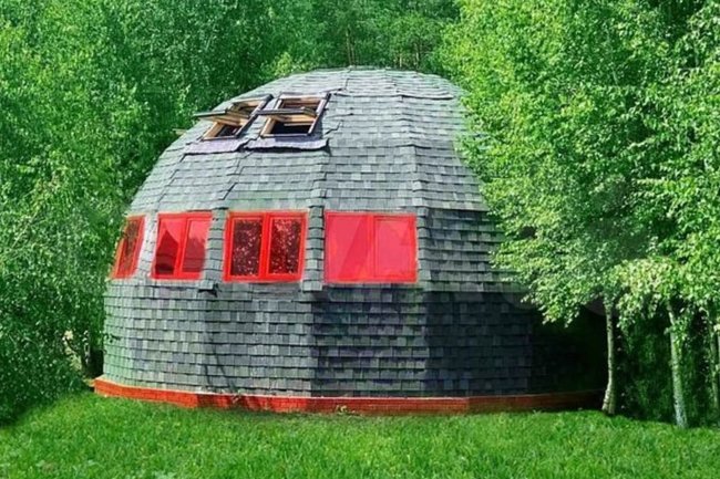 Снаружи дом представляет собой полусферу с красными окнами. Благодаря этому в здании присутствует красный свет. Кроме того, в ванной комнате установлена душевая завеса с изображением арбуза.