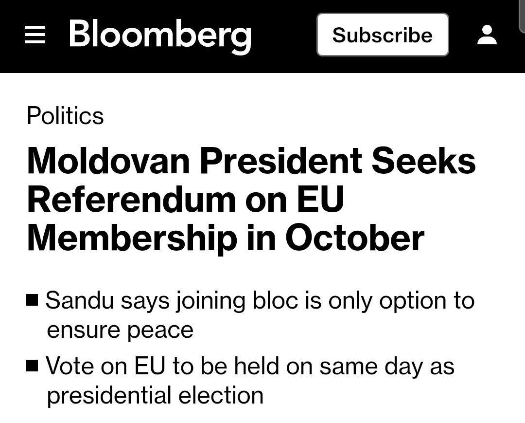 🇪🇺Президент Молдовы Майя Санду объявила, что в октябре 2024 года Молдова проведет референдум о вступлении в Европейский Союз