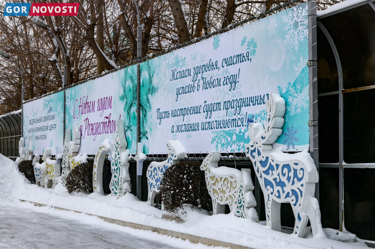 Многие предприниматели и учреждения Красноярска перед Новым годом празднично украшают наш город. Вот такие красивые композиции появились рядом с ФМБА на Коломенской.
