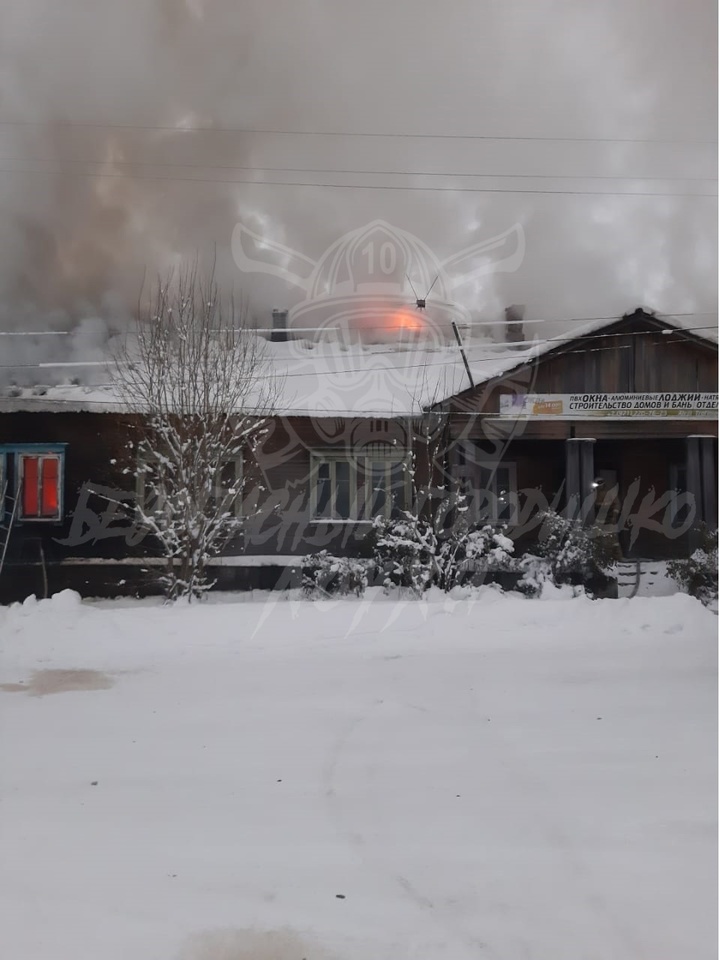 Крыша дома обвалилась над горящей квартирой в поселке Карелии