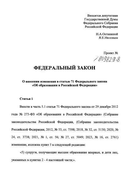 Жёны бойцов СВО смогут бесплатно получить высшее образование в пределах квоты. Такой законопроект внесли в Госдуму.
