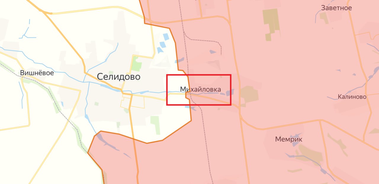 Русский флаг, поднятый над Михайловкой (восточная окраина Селидово).