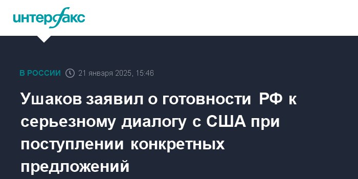 Ушаков заявил о готовности РФ к серьезному диалогу с США при поступлении конкретных предложений