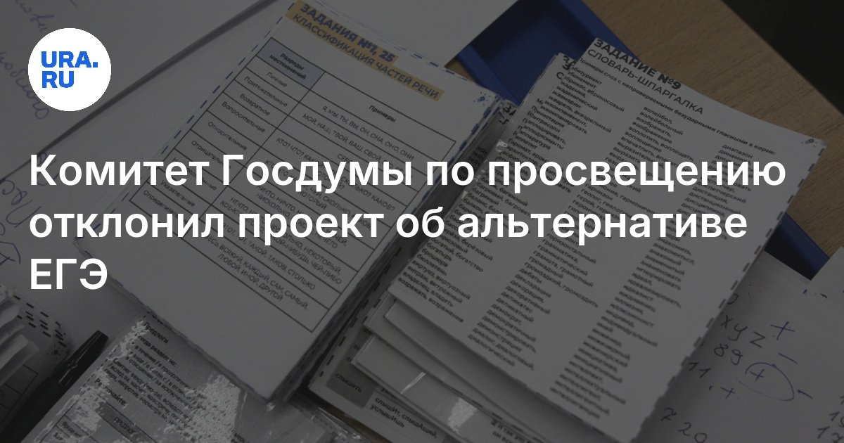 Законопроект, предлагающий школьникам выбор между сдачей ЕГЭ и государственными экзаменами по программам основного и среднего образования, был отклонен комитетом Госдумы по просвещению. Об этом сообщила первый заместитель председателя совещательного органа Яна Лантратова.
