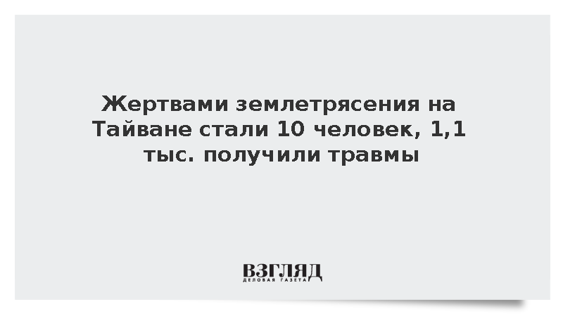 Число погибших в результате землетрясения на Тайване достигло 10, пострадавших – 1106, еще 705 человек остаются заблокированными, сообщает РИА «Новости» со ссылкой на Центральное информационное агентство острова.