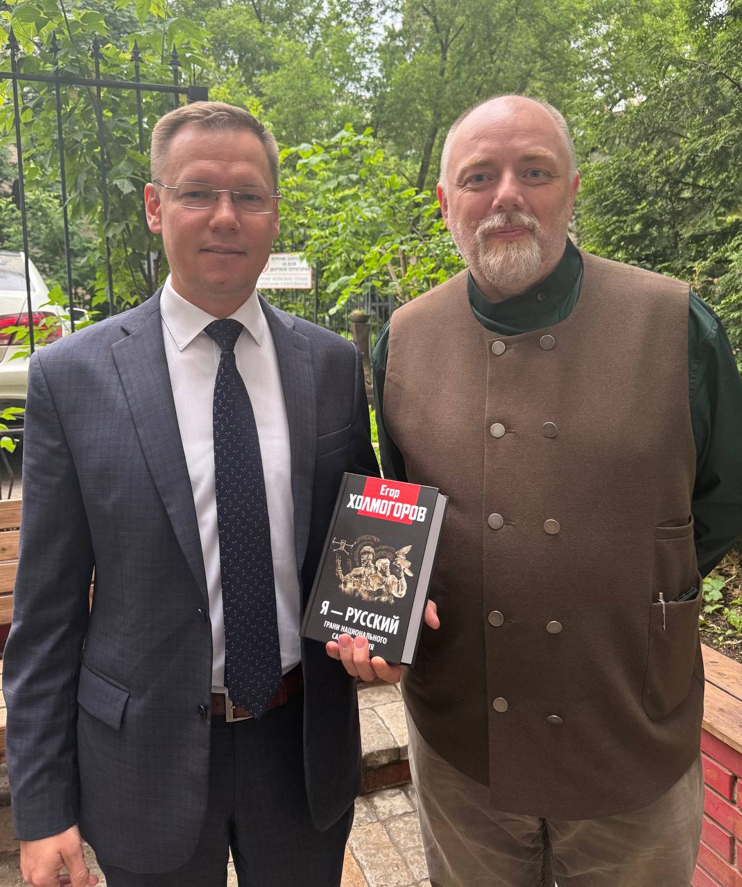 После презентации пообщались с автором книги Егором Холмогоровым, который подписал для меня памятный экземпляр книги. Обсудили некоторые проблемы русского общества. Уверен, встретимся ещё не раз. Поблагодарил Егора Холмогорова за книгу и её презентацию. Через такие встречи формируется понимание того, как с малых лет прививать русским людям любовь к своему народу, к своей культуре и к своей земле.