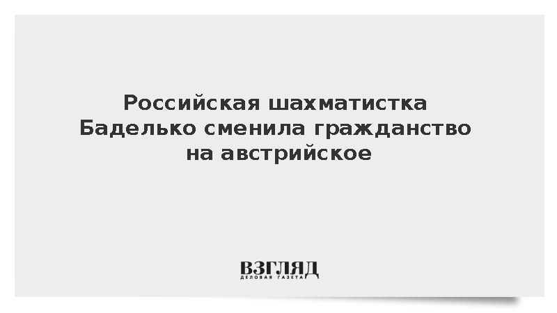 Российская шахматистка Ольга Баделько, ранее представлявшая Белоруссию, сменила спортивное гражданство на австрийское, передает ТАСС. Баделько, которой 21 год, является международным мастером и женским гроссмейстером, многократной чемпионкой Белоруссии и Европы среди юниорок до 16 лет. Она занимает 29-е место в женском рейтинге FIDE.