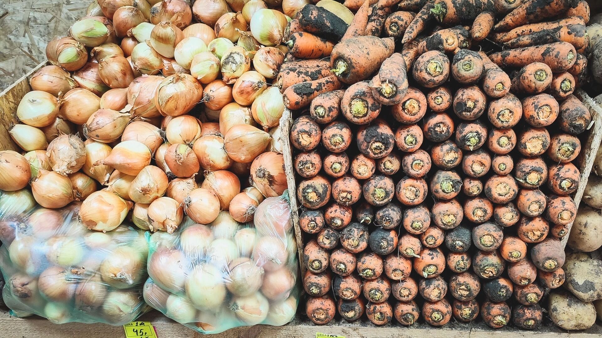 Например, картофель рухнул в цене почти на 12%, достигнув отметки в 51,38 рубля (было 58,18). От него не отстаёт свёкла — минус 11,5% (39,65 рубля на ценнике), а также морковь, которая стала дешевле на 10% (с 52,9 до 47,63 рубля).