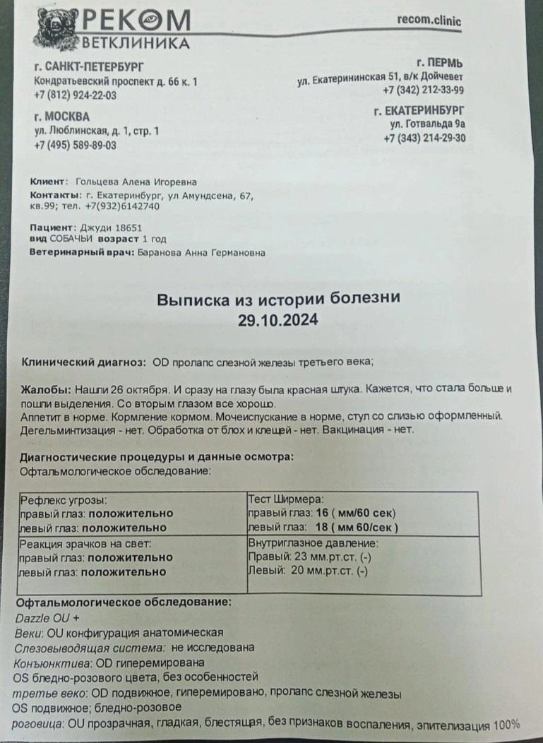 У Джуди диагностировали выпадение слезной железы. Эту проблему можно решить хирургической операцией — на нее сейчас собирают средства. Также для собаки ищут нового хозяина.