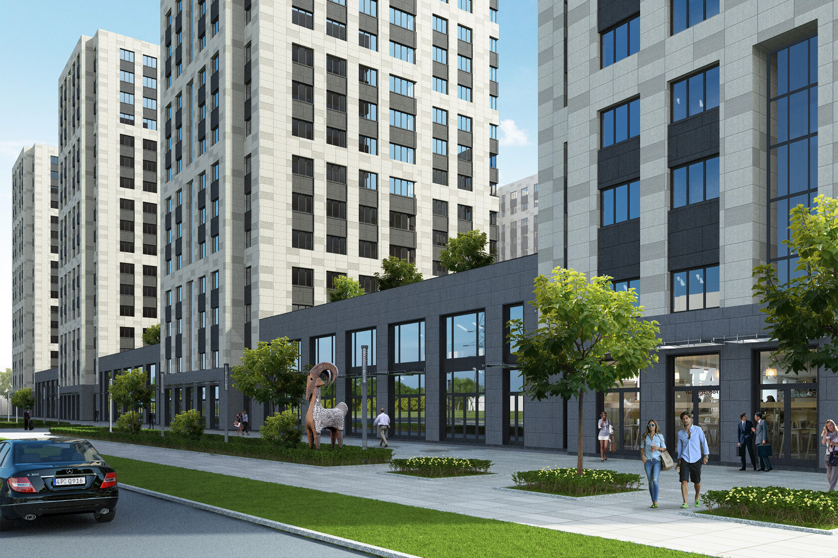 Окружение. Галерея, соединяющая корпуса, будет отдана под коммерческие помещения: магазины, салоны красоты, спортивные студии, пекарни и кофейни. На первом этаже откроют собственный детский сад на 120 малышей, а всего в нескольких минутах ходьбы от квартала возведут школу на 550 учеников.