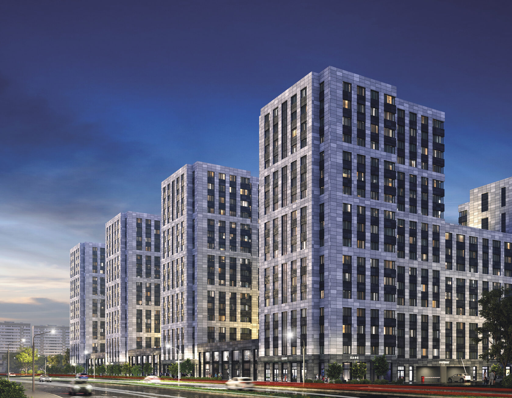 Характерный пример — жилой комплекс бизнес-класса «Б15», который холдинг «КВС» возводит на проспекте Маршала Блюхера. Проект состоит из 5 корпусов разной высоты (10, 15 и 17 этажей), соединенных двухэтажной галереей. Решая облик комплекса в лаконичном и энергичном стиле, свойственном нынешнему десятилетию, архитекторы использовали систему навесных вентилируемых фасадов с облицовкой керамогранитными плитами.