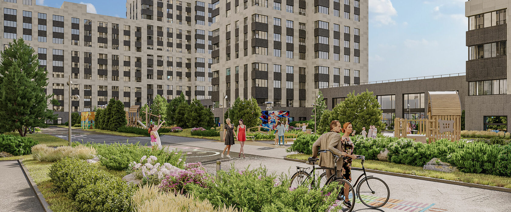 Благоустроенная территория, современные системы видеонаблюдения и контроля доступа сделают комплекс безопасным и уютным. Кстати, проект ландшафтного дизайна разработан одной из ведущих компаний Петербурга в этой сфере. Авторы разделили зоны отдыха по возрастам: пространство для взрослых включает в себя крытую перголу со шкафом для хранения и обмена книг, скамьи и стол для игры в шахматы.