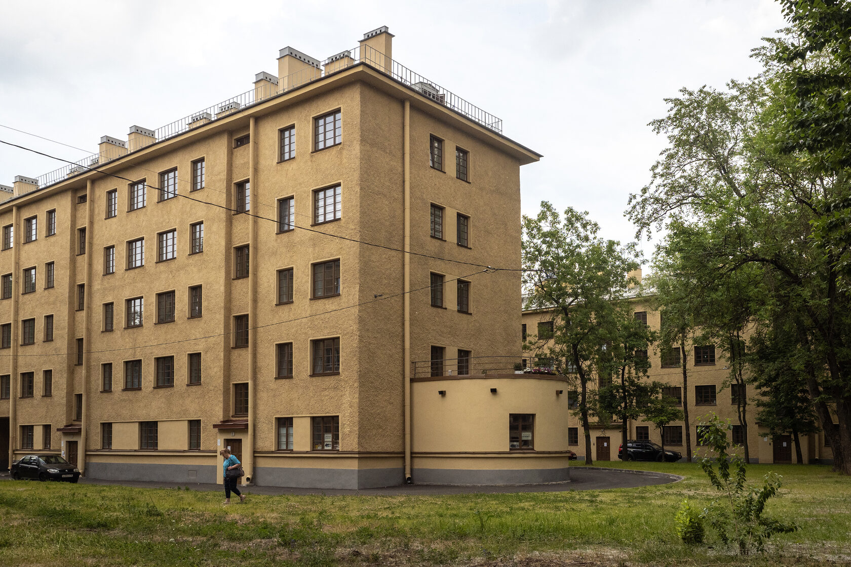После революции жилье здесь стало лучше и доступнее. Предки современных ЖК назывались жилмассивы. Один из них, Кондратьевский, теперь — объект культурного наследия. Это яркий пример стиля конструктивизм, возникшего после революции и больших перемен в обществе.
