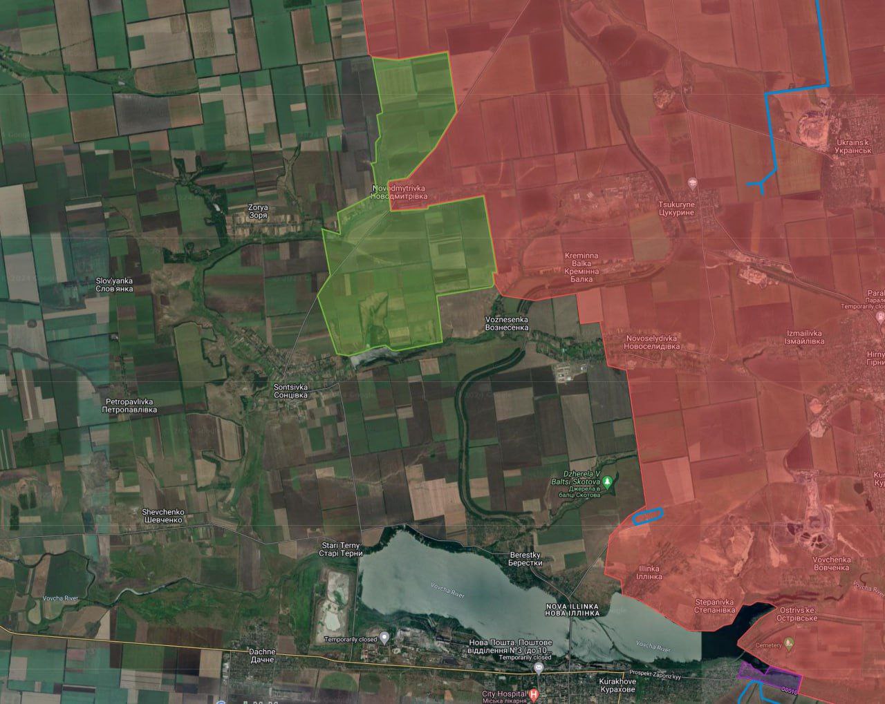 Международные ТГ-каналы отмечают, что российские войска за последние сутки заметно продвинулись в направлении Сонцовки севернее Курахово.