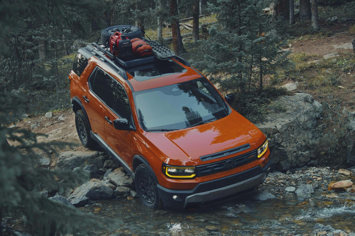 На выбор доступны три комплектации. Базовая теперь называется RTL, следом идет упомянутый суровый вариант TrailSport, а на вершине гаммы – TrailSport Elite. В списке оборудования самого дешевого исполнения значатся: светодиодная оптика, 18-дюймовые колеса, электропривод багажной двери, комбинированная обивка (кожа + ткань), виртуальная приборка на 10,2 дюйма, мультимедиа с планшетом диагональю 12,3 дюйма, беспроводная зарядка для смартфона, подогрев передних сидений, трехзонный климат-контроль и восемь подушек безопасности. Кроме того, уже в базе есть комплекс Honda Sensing – это широкоугольные камера и радар, адаптивный круиз-контроль, ассистент движения в пробках, системы автоторможения и удержания в полосе движения. Начиная с версии TrailSport появляются диодные противотуманки, панорамный люк в крыше и обогрев лобового стекла. Топовый Honda Passport TrailSport Elite вдобавок имеет перфорированную кожу, вентиляцию передних сидений, подогрев руля и кресел второго ряда, аудиосистему Bose и систему кругового обзора TrailWatch, помогающую водителю обходить препятствия.