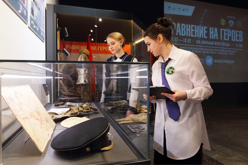 В Музей на Поклонной горе прибыли предметы из коллекций трех школ - участников программы "Школьный музей Победы". Московская школа № 2006, Бунинская школа Орловской области и гимназия г. Светлогорска Гомельской области выставили собранные и хранимые ими раритеты - предметы обмундирования, фронтовые письма участников Великой Отечественной войны. На выставке можно увидеть фуражку, подшлемник, боевую схему моряка Днепровской военной флотилии, участника освобождения Светлогорского района Беларуси Сергея Петровича Хватова, личные вещи командира отряда разведки сержанта Ивана Ананьевича Амелина, летчика 171-го истребительского авиаполка Николая Яковлевича Столярова. Экспозицию дополняют реликвии с мест сражений, найденные школьниками в поисковых экспедициях вместе с военно-патриотическим клубом "Ратник".