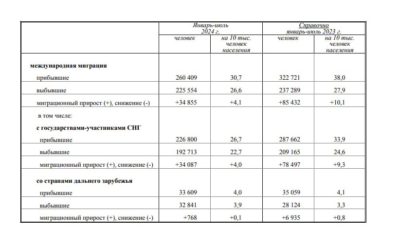 В 2024 совсем все плохо с притоком мигрантов. За 7м24 чистый приток по международной миграции снизился до 34.9 тыс, сократившись почти в 2.5 раза относительно 7м23.