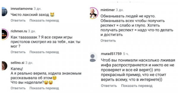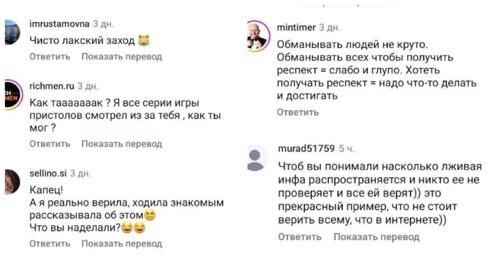 Когда обман раскрылся, лже-дублёру пришлось отдуваться от гневных комментаторов.