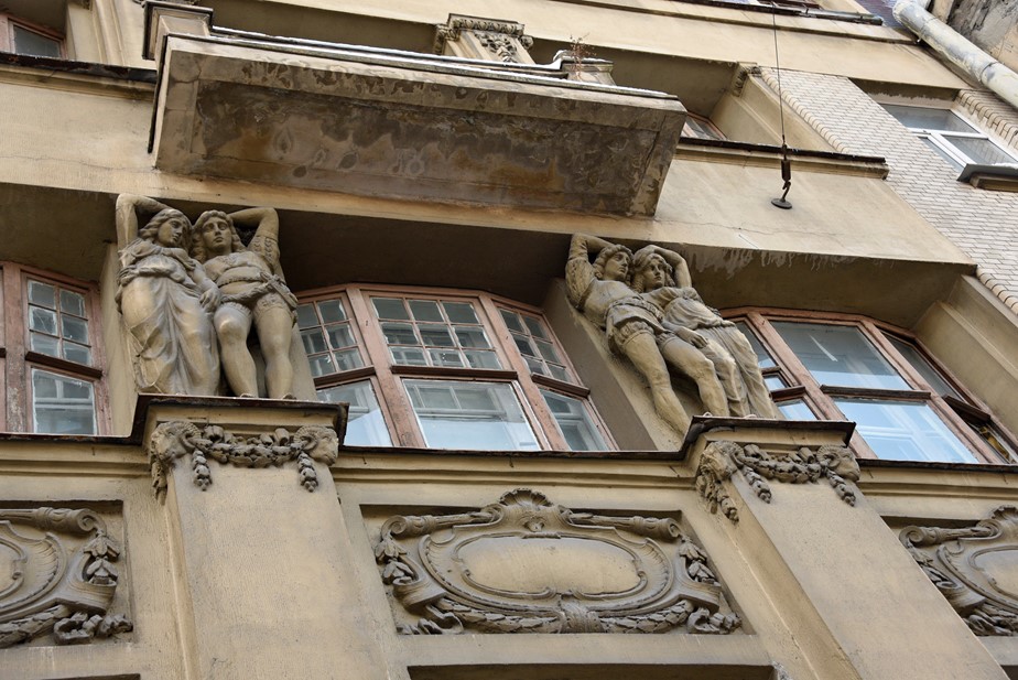 Размах во истину поражал воображение: башенки со шпилями, арочные лоджии, контрастный фасад с изысканной лепниной, полуколонны, кирпичная облицовка, которая со временем потемнела и придала дому еще больше сурового обаяния и, конечно, фигуры атлантов и кариатид, облачённых в одежды эпохи Ренессанса. Но главное ожидало богатых арендаторов внутри: в доме было 10 огромных 20-комнатных квартир — причём каждая комната площадью 25-30 м. Также были предложения с 10, 7, 6 и 5 комнатами. Настоящий "класс люкс" для почтенного квартиросъёмщика.