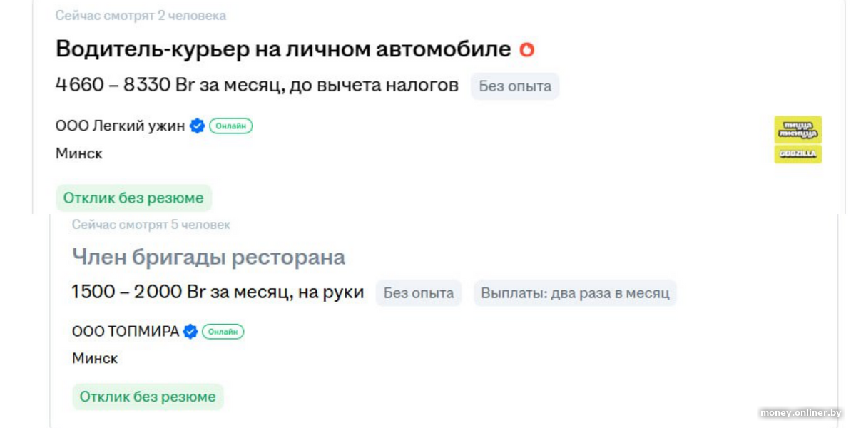 1. Пиццер — 1200—1800 рублей на руки, с перспективой роста.