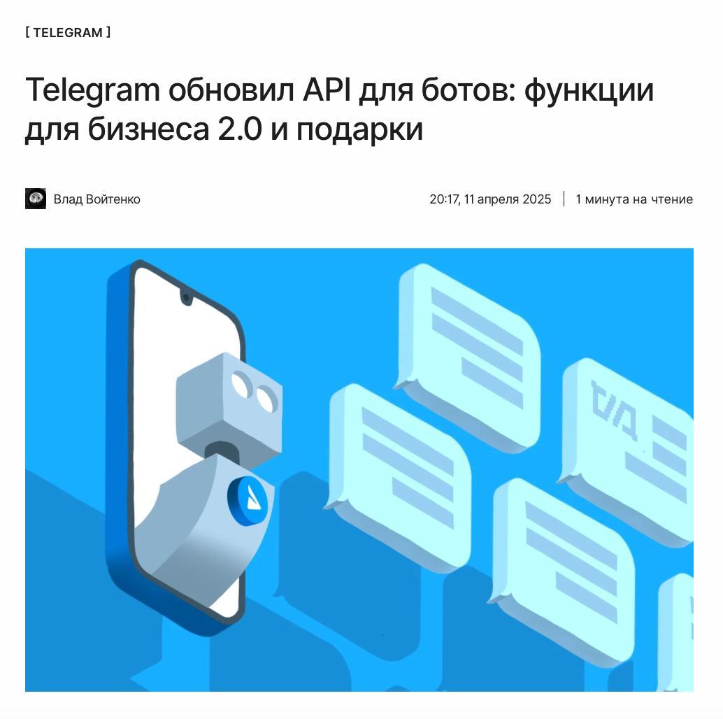 Telegram ΠΎΠ±Π½ΠΎΠ²ΠΈΠ» Bot API Π΄ΠΎ Π²Π΅ΡΡΠΈΠΈ 9.0, ΠΊΠΎΡΠΎΡΠ°Ρ ΠΏΡΠ΅Π΄Π»ΠΎΠΆΠΈΠ»Π° Π±ΠΎΡΠ°ΠΌ ΠΏΠΎΠ΄Π΄Π΅ΡΠΆΠΊΡ ΡΡΠ΄Π° Π²Π°ΠΆΠ½ΡΡ ΡΠΈΡΠ΅ΠΊ.