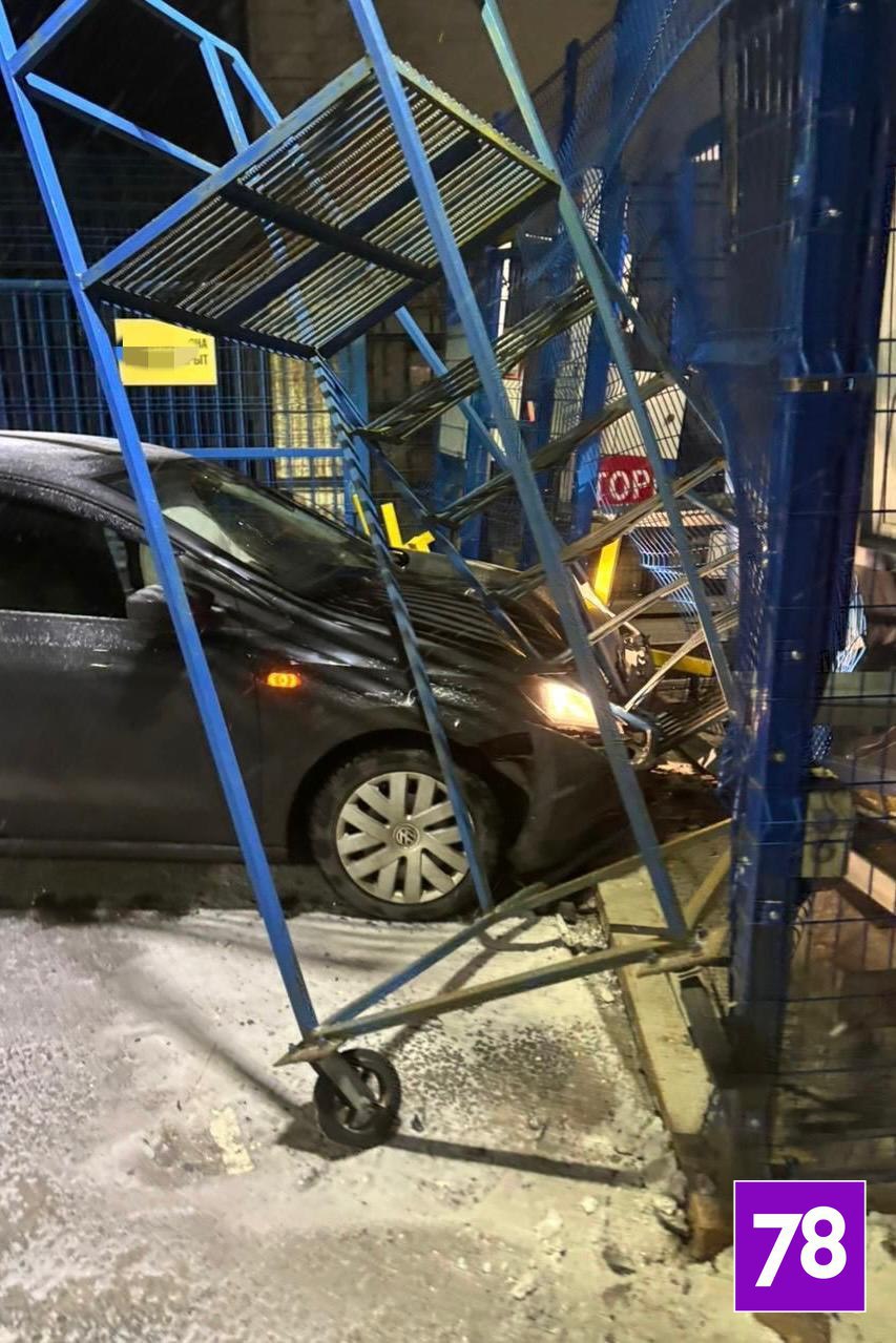 Лихач за рулём «Фольксваген Поло» на скорости въехал в забор, разбил шлагбаум и влетел в охранный пост. ДТП произошло ночью на улице Энергетиков в Подпорожье.