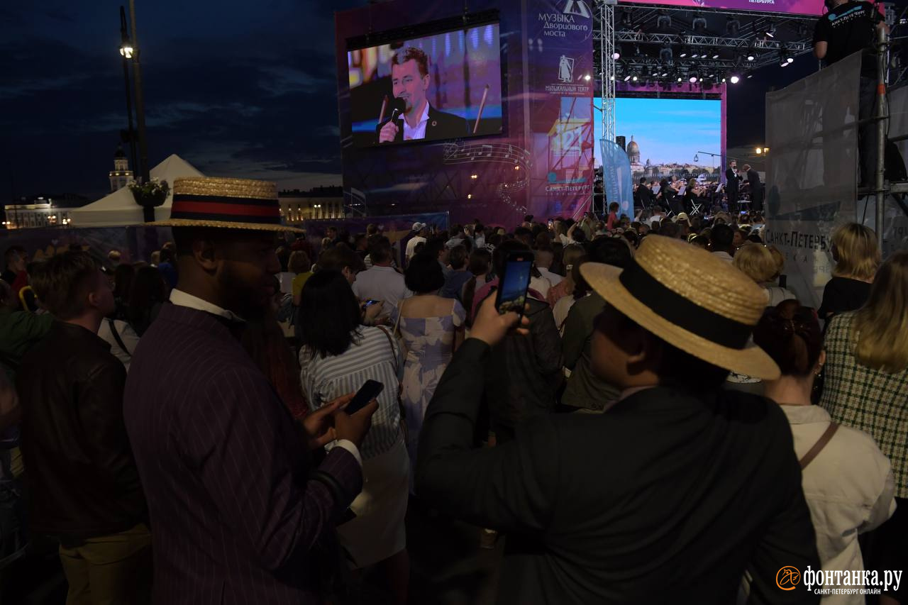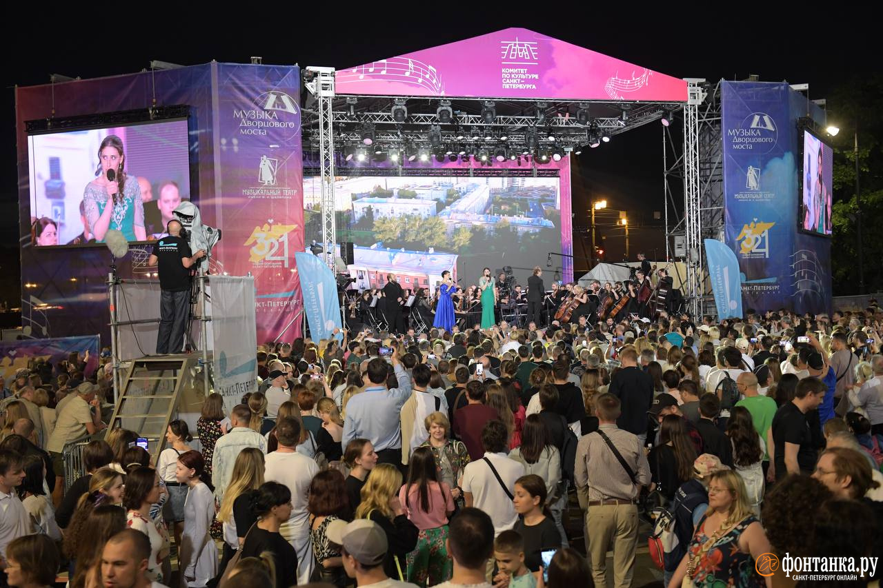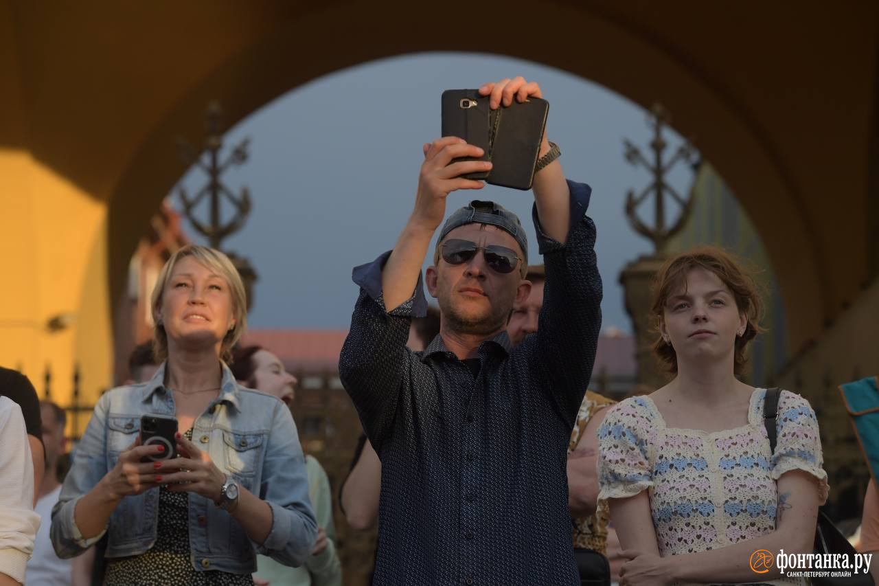 Дворцовый мост, уже традиционно, развели под «Гимн великому городу» Глиэра в исполнении всех солистов, участвующих в концерте. А в этот поздний вечер на сцену выходили Назия Аминева, Анна Викулина, Елизавета Михайлова, Александра Хасанова, Павел Шнипов, Дмитрий Мулярчик, Тигрий Бажакин и Иосиф Пилиев.