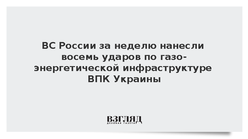 Вооруженные силы России за неделю нанесли восемь ударов по важным объектам украинской газоэнергетической инфраструктуры, сообщило российское Министерство обороны.