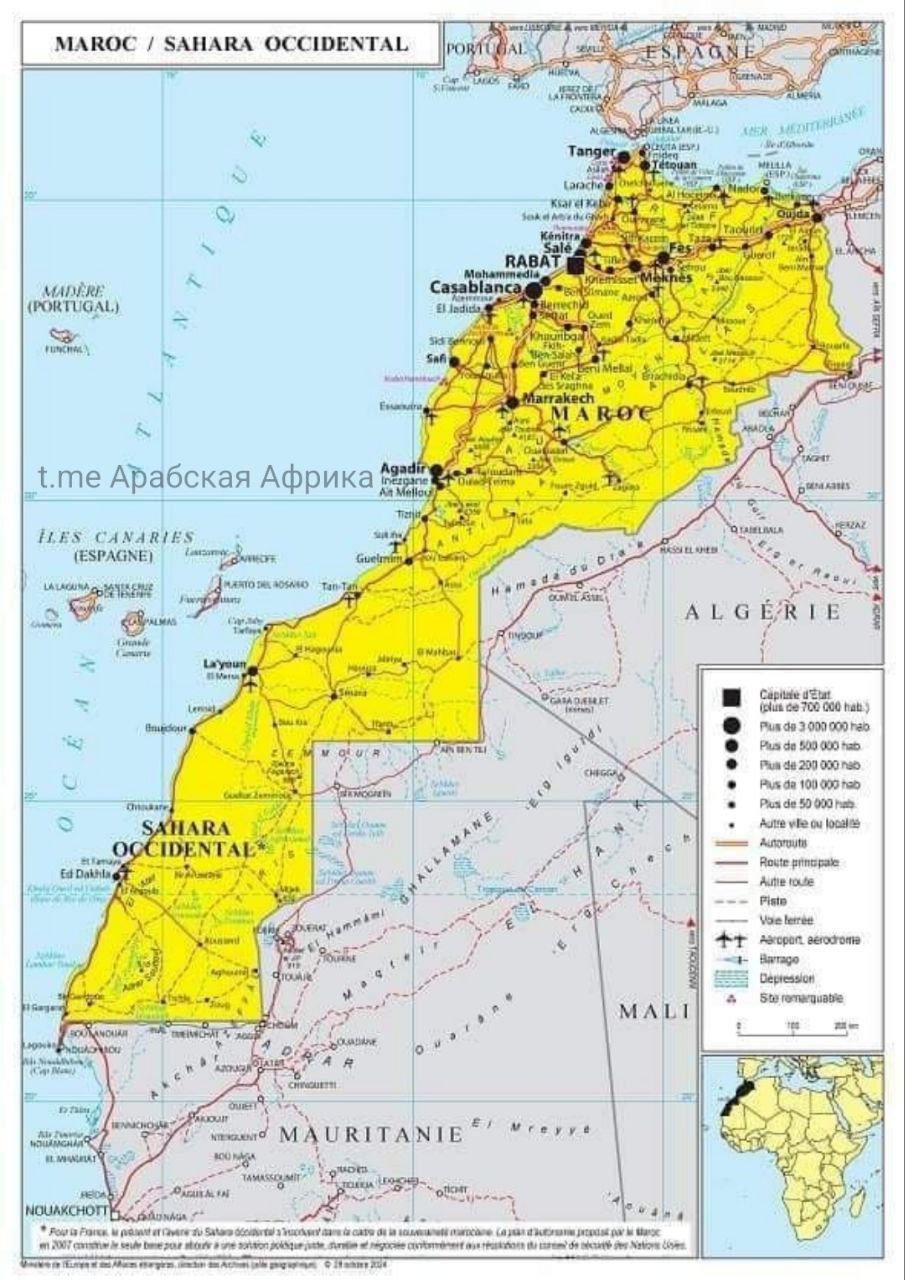 Уходить из Африки Франция не планирует. Эммануэль Макрон завершил трехдневный визит в Королевство Марокко, где был с большой представительной делегацией и заключил с королем Мухаммедом VI межправительственные договоры на 10 млрд евро. Условием сближения с бывшим французским протекторатом - признание суверенитета на территорию Западной Сахары. Соответсвующее заявление Макрон сделал в местном парламенте, а в подтверждение французский МИД опубликовал карту, где территория Марокко распространяется на спорный регион. Конфликт вокруг Западной Сахары длится пятьдесят лет. Малонаселенный кусок пустыни на берегу океана 1976 года был испанской колонией. Когда испанцы ушли территорию поделили между собой Мавритания и Марокко, а поддержку местным борцам за независимость (Фронт ПОЛИСАРИО) оказал Алжир. Впоследствии Мавритания отказалась от территориальных претензий, а марокканские войска заняли большую часть Западной Сахары, вытеснив ПОЛИСАРИО и значительную часть населения в пустыню. Предполагалось закрепить положение референдумом, но он проведен не был. Судьба региона это одна из причин конфликта между Марокко и Алжиром. Признание Францией марокканского суверенитета над ним означает, что Париж окончательно определелился с союзником в регионе. Кстати, название Марокко, которое все мы используем, - французское. А на арабском страна называется амбициозно - Королевство Магриб. (Магриб это вообще вся северо-западная Африка.)