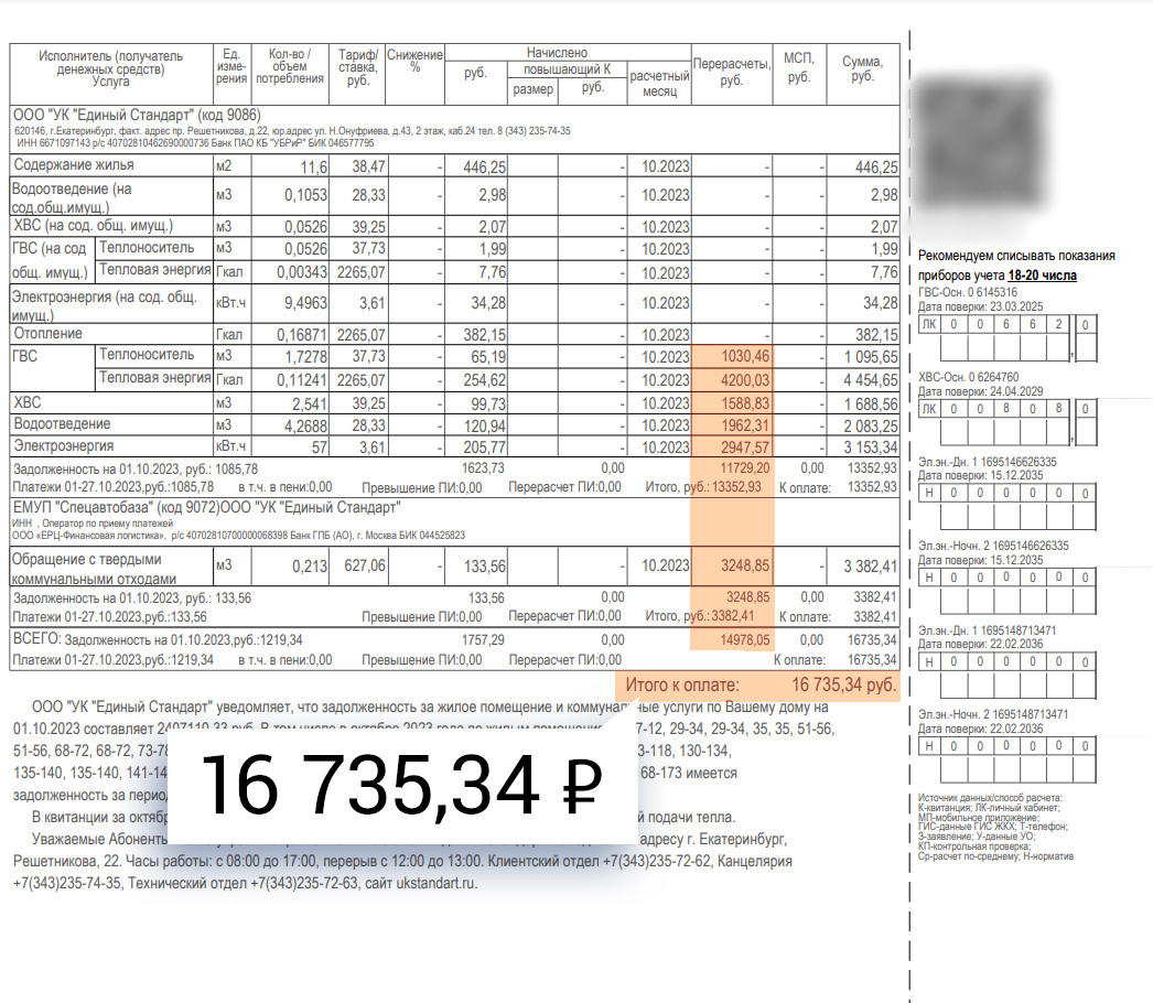 — В квартире на Хохрякова, 102 провели перерасчет, который привел к увеличению стоимости услуг с 1500–2000 рублей до