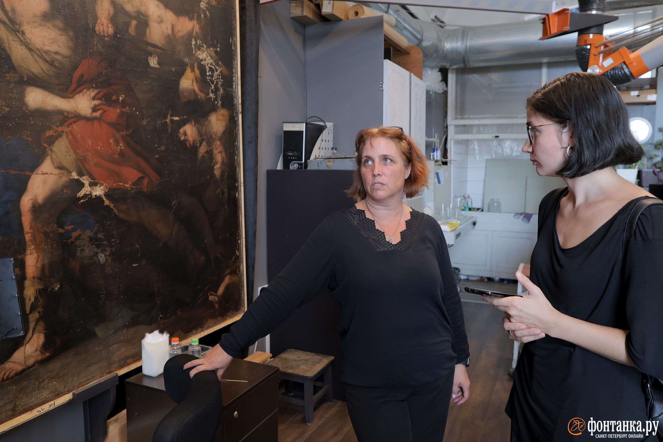О том, почему за картину взялись только в 2022 году и как именно её приводят в порядок, «Фонтанке» рассказали реставраторы масляной живописи первой категории Ольга Харитонова и Павел Александров, которые уже полтора года работают с полотном в Академии.