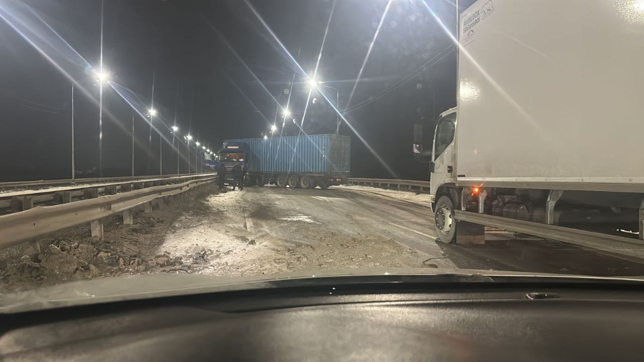 Из-за этого фура перекрыла все полосы движения. При этом в дежурную часть Госавтоинспекции об инциденте никто не сообщал, что означает, что водителю большегруза быстро помогли вернуться в исходное положение и продолжить движение.