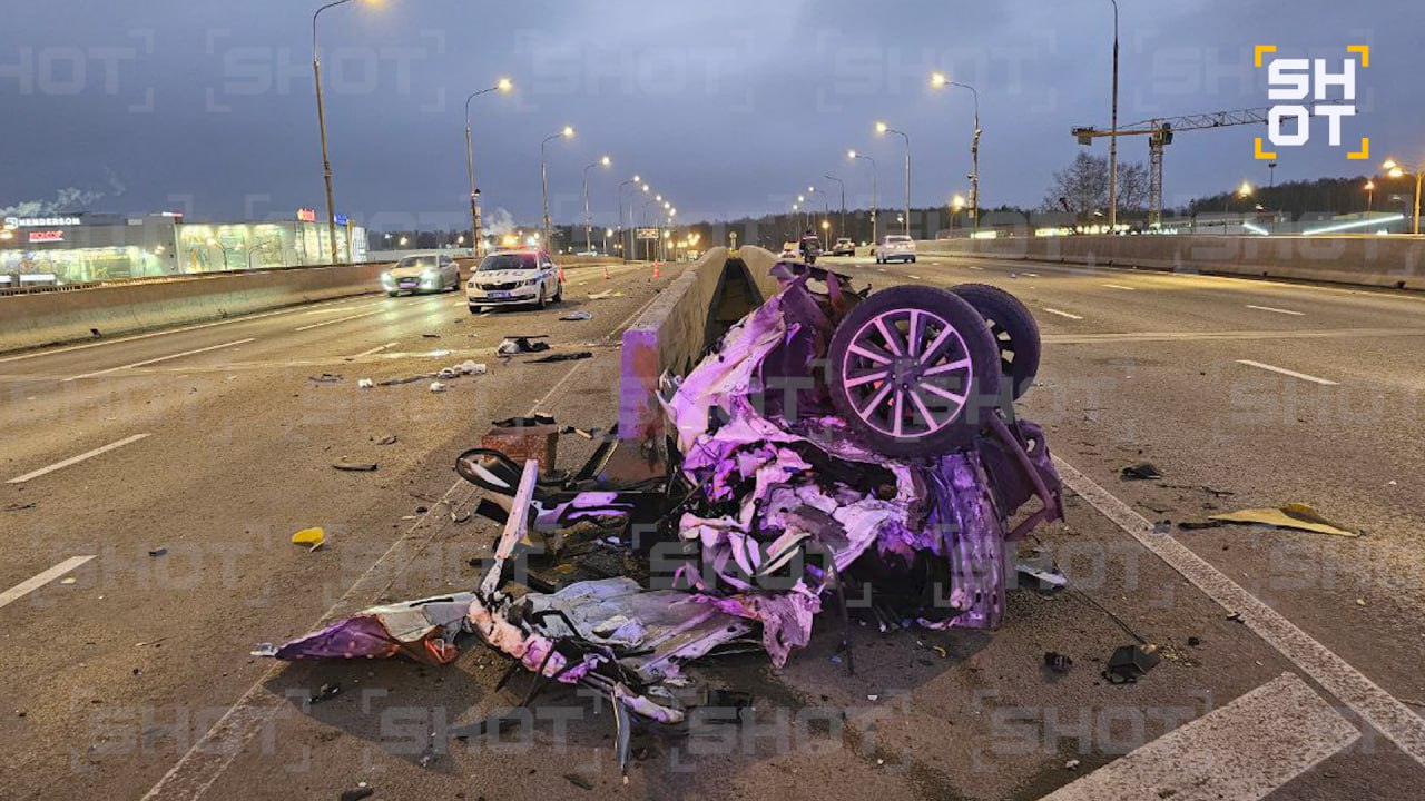 Пьяная женщина устроила жёсткое ДТП, уходя от полиции в Москве. Машину разорвало на две части.