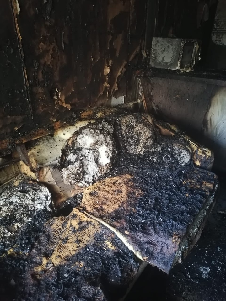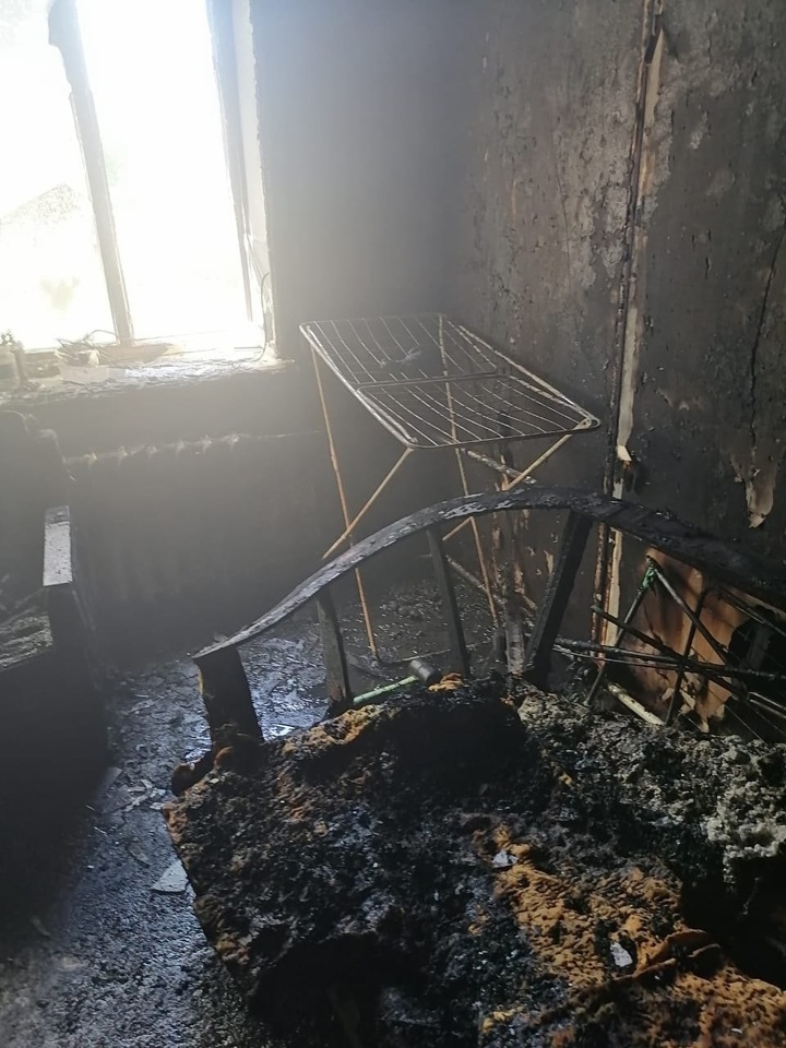В результате пожара квартира была сильно повреждена огнем. Причины, виновный и ущерб устанавливаются. Никто не пострадал.