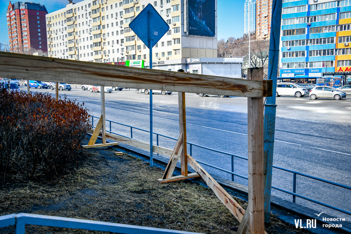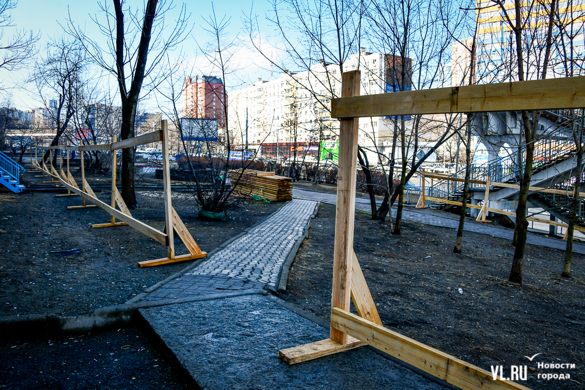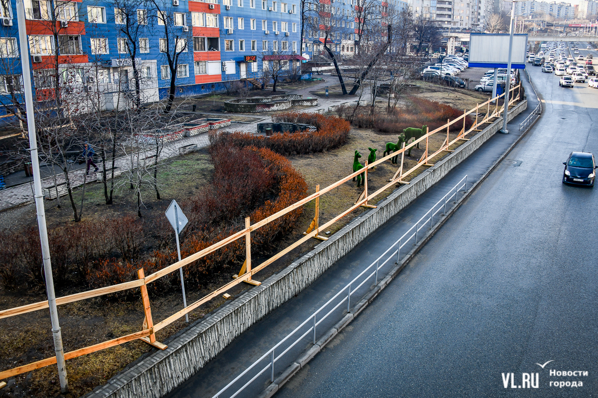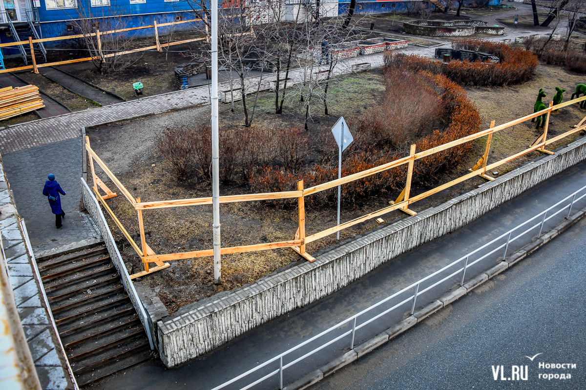 Сейчас деревянное основание под строительный забор установлено почти по всему периметру сквера, профнастил к нему пока не прибит. Со стороны виадука, который расположен ближе к путепроводу, оставили проход для пешеходов. Правда, как минимум один переход в сторону административного здания (Некрасовская, 100), скорее всего, будет временно закрыт.