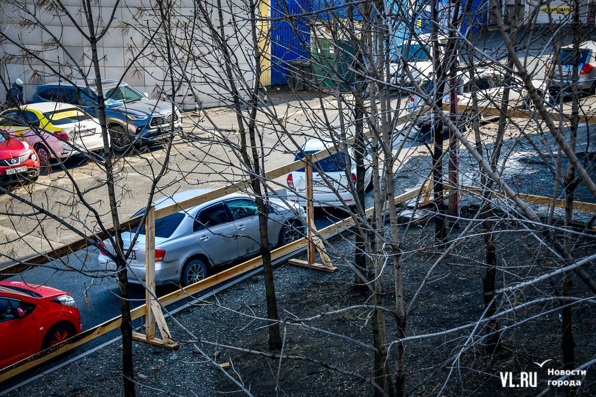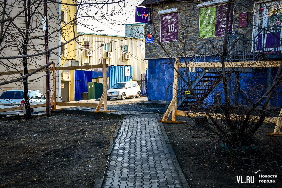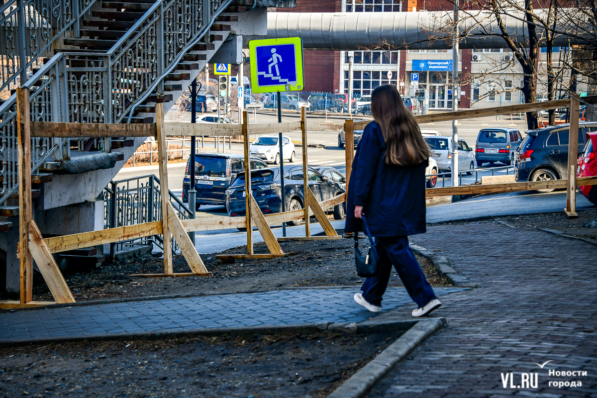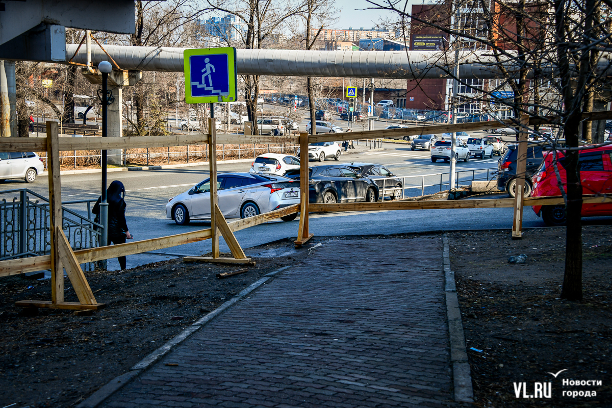 Сейчас деревянное основание под строительный забор установлено почти по всему периметру сквера, профнастил к нему пока не прибит. Со стороны виадука, который расположен ближе к путепроводу, оставили проход для пешеходов. Правда, как минимум один переход в сторону административного здания (Некрасовская, 100), скорее всего, будет временно закрыт.