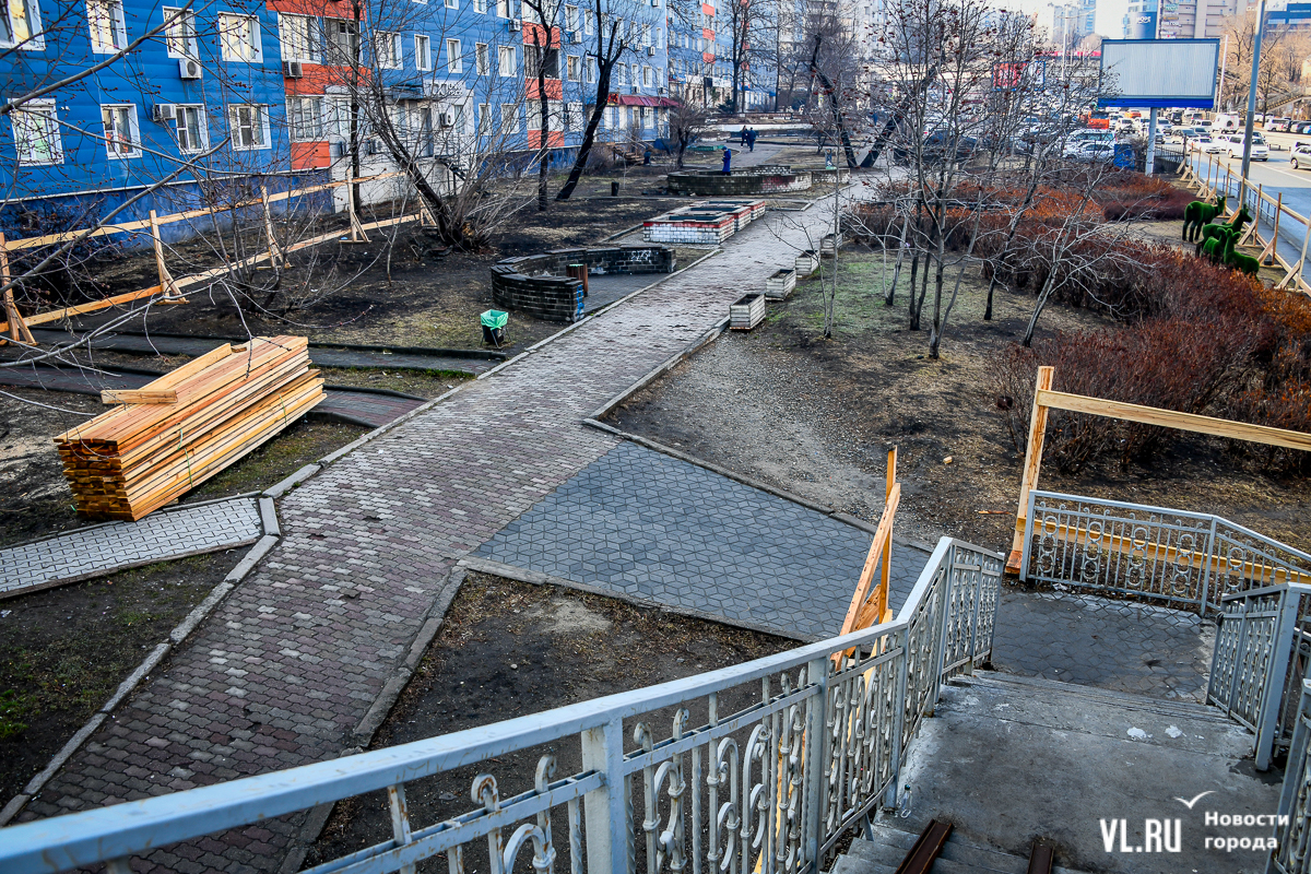 Работы ведёт индивидуальный предприниматель из Владивостока Михаил Мишунин за 32 470 199 рублей. Первоначально предполагалось, что благоустраивать территорию будет «Корпорация «Приминжиниринг» – компания раньше благоустраивала часть территории у водоёма с утками-мандаринками. Но с первоначальным победителем торгов не смогли заключить контракт – ни один банк не согласовал ему банковскую гарантию без объяснения причин. А наличие такого документа являлось существенным условием договора. Подрядчика признали уклонившимся от подписания.