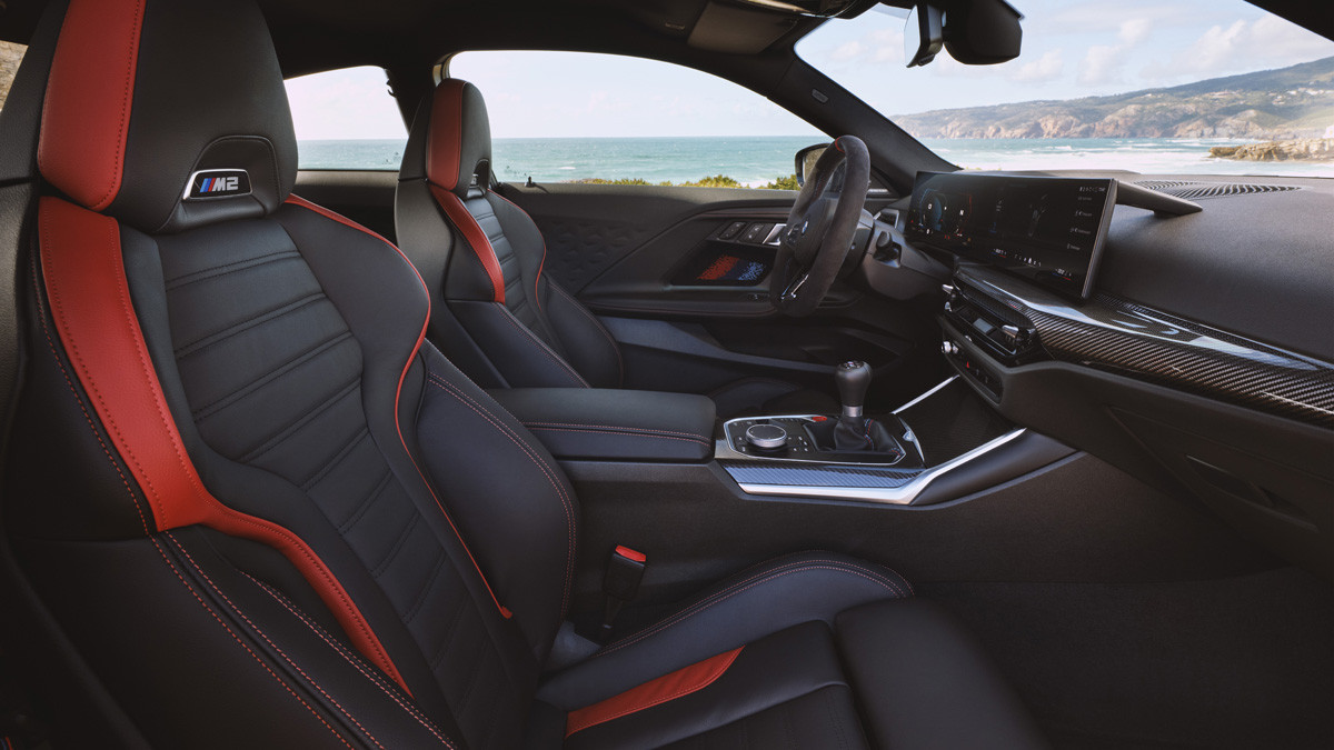 Те же изменения затронули интерьер BMW M2. Ещё покупателям «заряженного» купе предложат в качестве опции кресла-ковши M Carbon, которые позволяют снизить вес автомобиля. Сиденья M Sport клиенты могут заказать в отделке из кожи Vernasca чёрного цвета с красными акцентами.