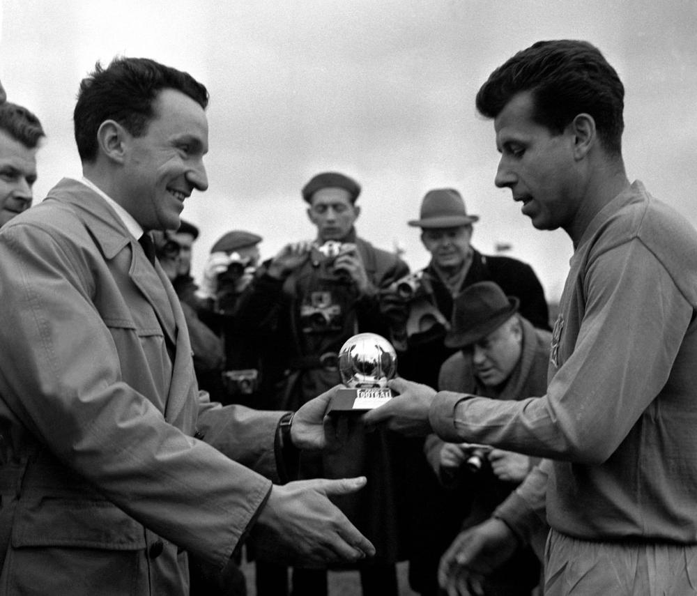 Il n'aura pas fallu attendre longtemps pour qu'un Français le remporte. En 1958, deux ans après sa création, c'est Raymond Kopa qui se voit décerner le Ballon d'Or. Vainqueur de la Coupe des champions - l'ancêtre de la Ligue des champions - avec le Real Madrid et troisième du Mondial avec les Bleus, le milieu offensif devance largement l'attaquant allemand du Rot-Weiss Essen Helmut Rahn et son partenaire en équipe de France, auteur de treize buts lors de la Coupe du monde, Just Fontaine.