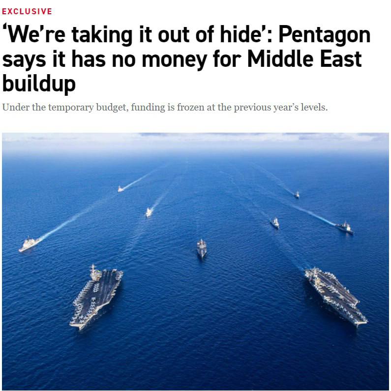 🇺🇸Пентагон заявляет, что у него нет денег на наращивание своей группировки на Ближнем Востоке — Politico.