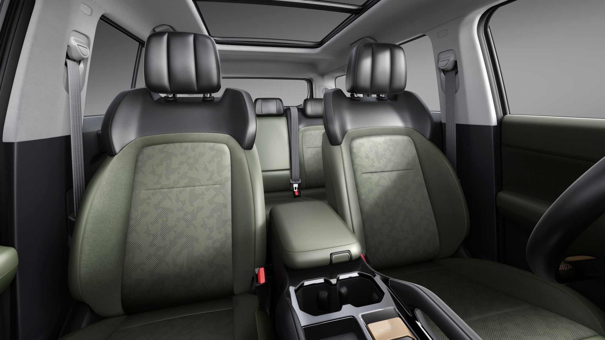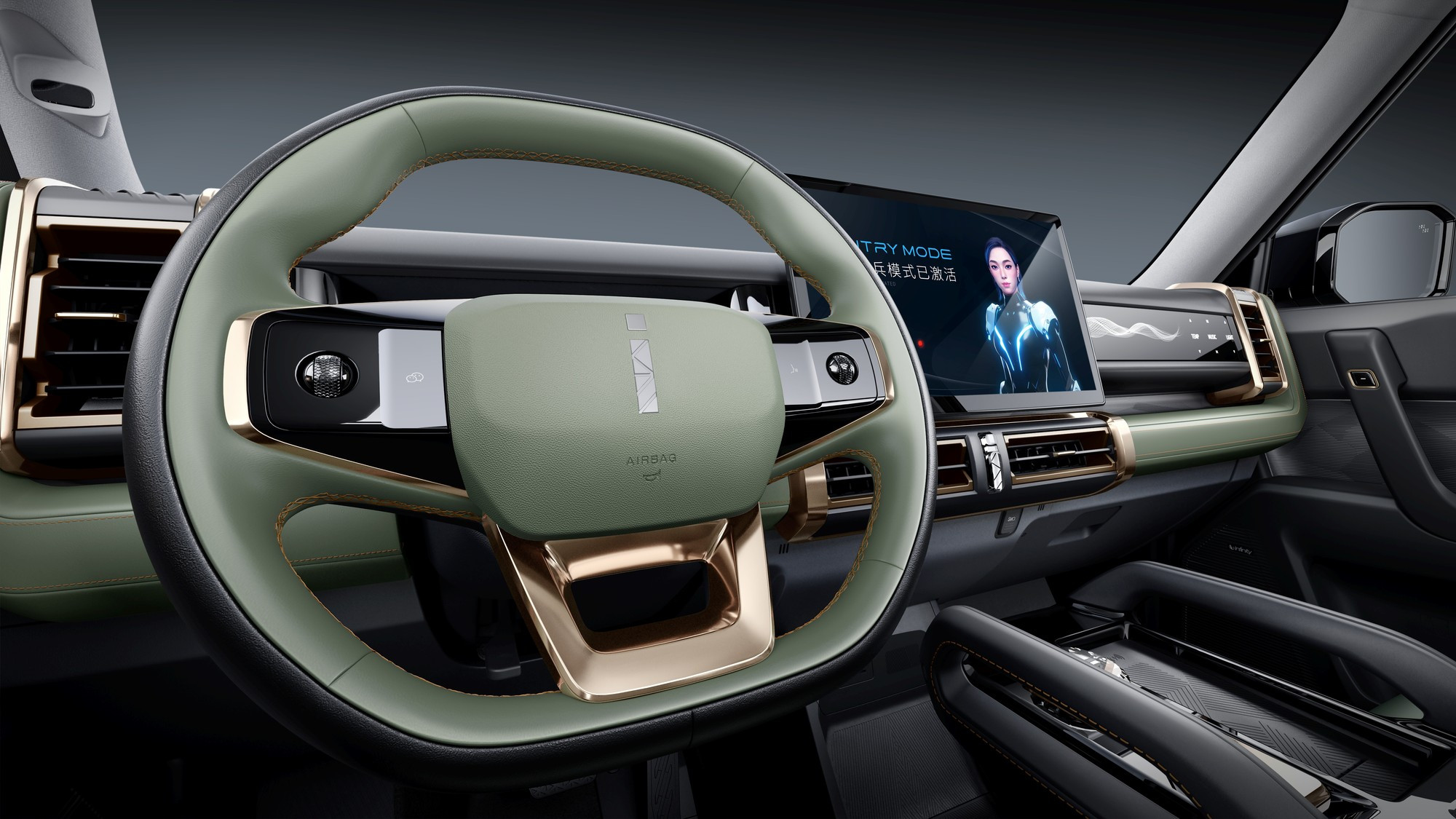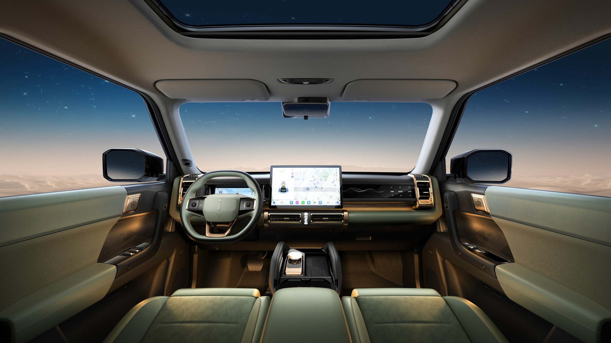 Салон отделан дорогими на вид материалами. На передней панели может быть до трёх экранов, в том числе индивидуальный для переднего пассажира. В мультимедийную систему интегрирован виртуальный ассистент i-VA — генеративный ИИ в виде девушки, своеобразный аналог ChatGPT. Центральный тоннель огорожен двумя массивными поручнями, между которыми размещены два подстаканника, лоток беспроводной зарядки для смартфона и хрустальная шайба выбора ездовых режимов. Топ-версия кроссовера щеголяет передними сиденьями с массажёрами и вентиляцией, мощной аудиосистемой с 12 громкоговорителями и автопилотом второго уровня по классификации SAE.