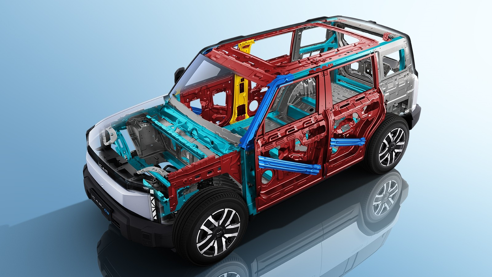 Кузов у iCar 03 несущий, подвеска — пружинная: спереди — типа McPherson, сзади — независимая многорычажная. Габаритная длина с учётом висящего на распашной багажной двери «рюкзачка» — 4406 мм, ширина — 1910 мм, высота — 1715 мм, колёсная база — 2715 мм. Дорожный просвет — 200 мм (с полной нагрузкой — 170 мм), угол въезда — 26 градусов, угол съезда — 29 градусов. Снаряженная масса — 1679-1992 кг в зависимости от модификации. Штатные колёса — 18- либо 19-дюймовые.