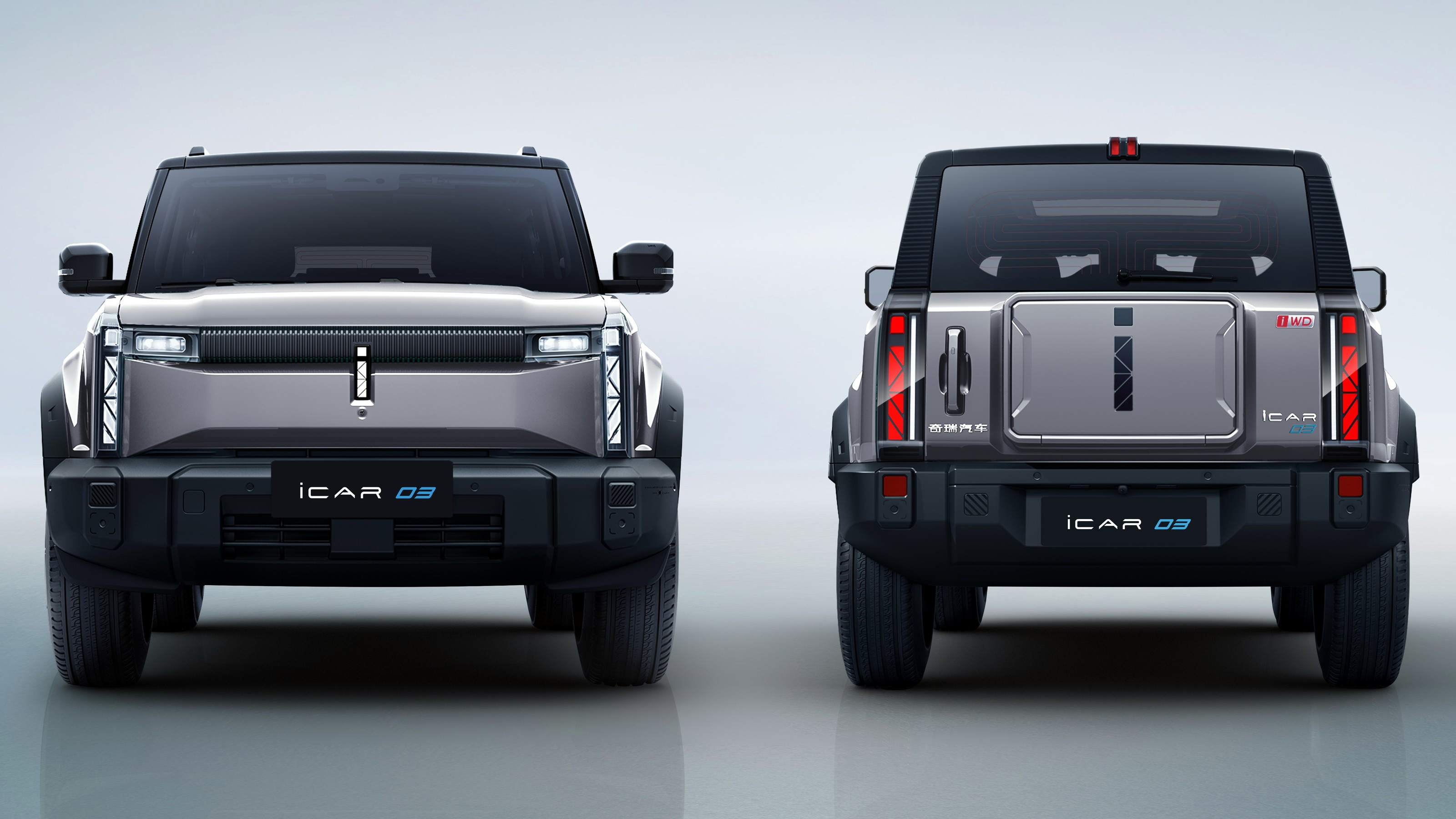 В «базе» iCar 03 имеет единсвтенный электромотор на задней оси, его максимальная отдача — 135 кВт (184 л.с.) и 220 Нм. Ёмкость батареи — 50,63 либо 65,69 кВт·ч, запас хода на одной зарядке — 401 и 501 км по циклу CLTC соответственно.