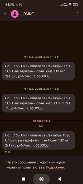 Как сообщил читатель NGS55.RU, вчера, 26 августа, «Омские кабельные сети» прислали своим клиентам сообщения с обновленной стоимостью услуг. Последний раз компания объявляла о повышении тарифов год назад.