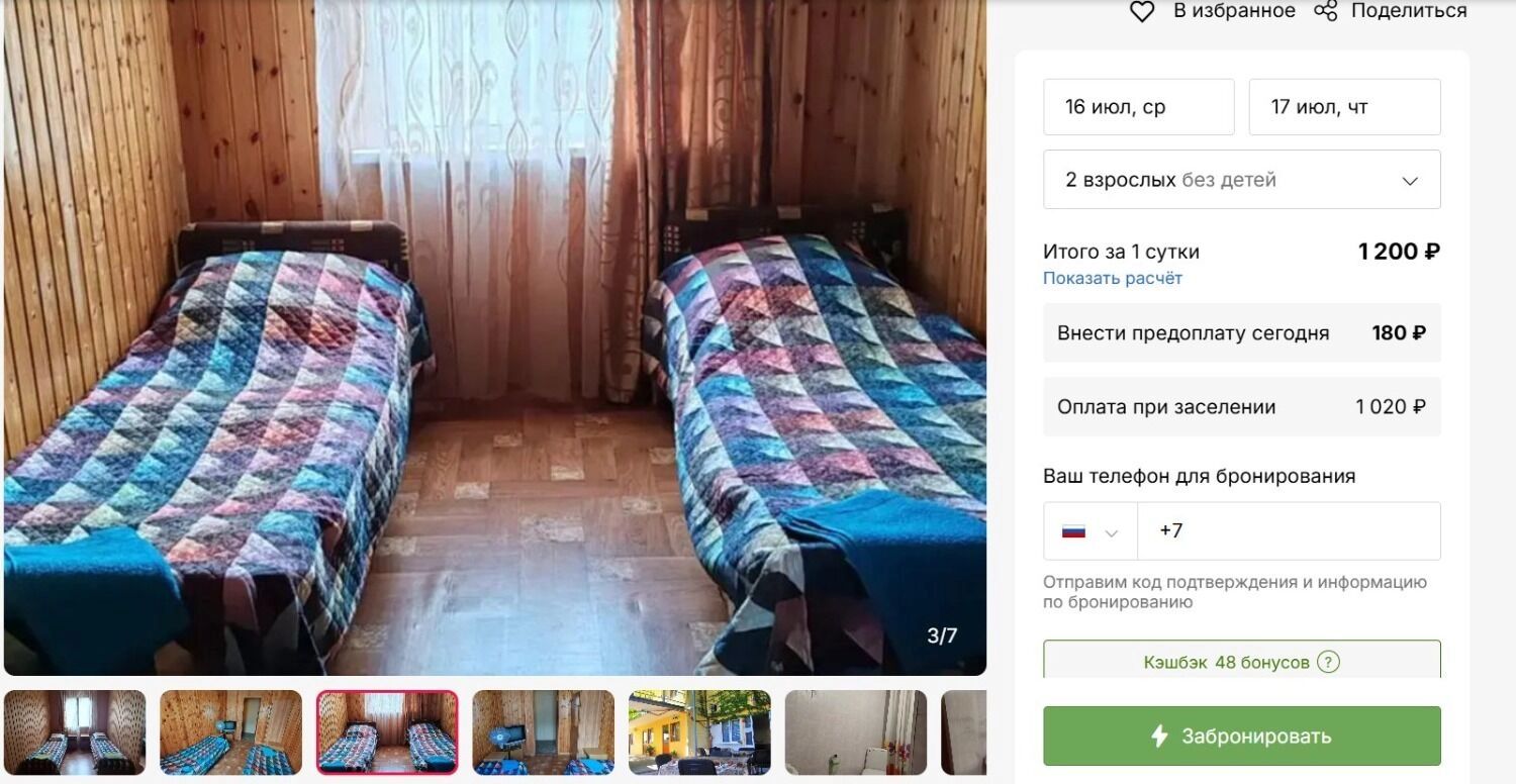Еще один вариант — снять квартиру. Здесь тоже все зависит от того, что вам нужно. Если вы едете на море, а квартира вам нужна лишь для того, чтобы провести ночь, то можно встретить и номера на двоих за 1 тысячу рублей. Уже за 1,8 тысячи владельцы предлагают двухместный номер в гостевом доме. Там есть кровать и тумбы, а вот столовая и санузел будут уже общими с остальными туристами.