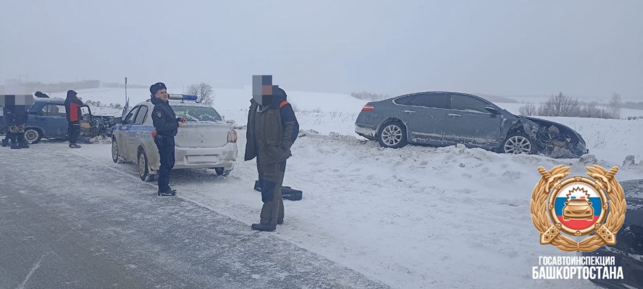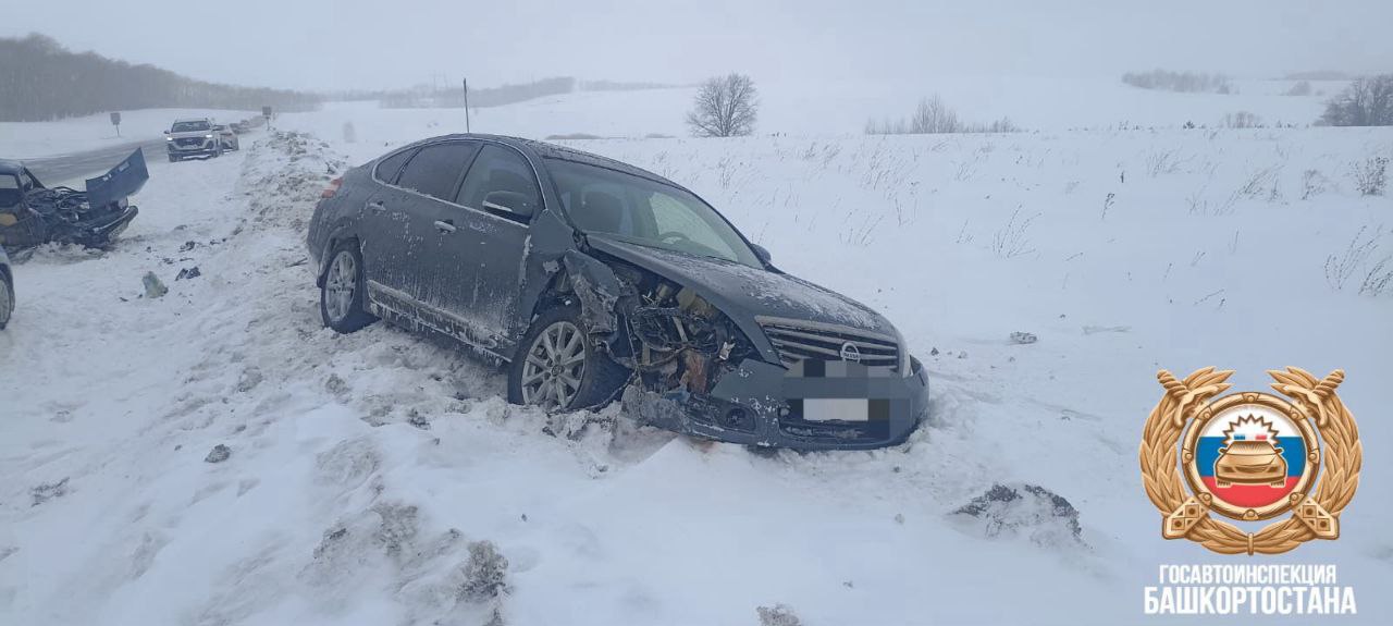 Авария произошла сегодня днём на дороге Уфа-Янаул. По предварительным данным, 22-летний местный житель за рулём "Nissan Teana" в условиях сильного снегопада, столкнулся со встречным ВАЗ-2107.