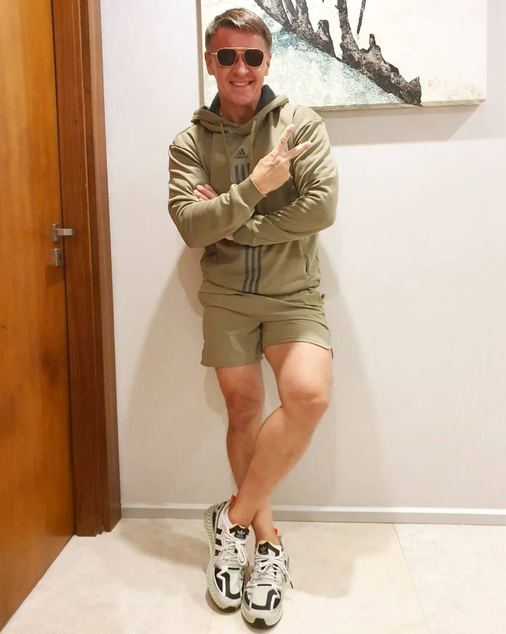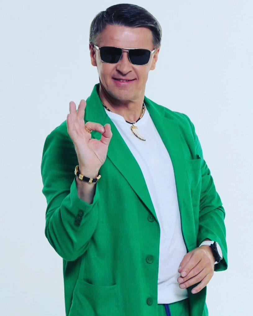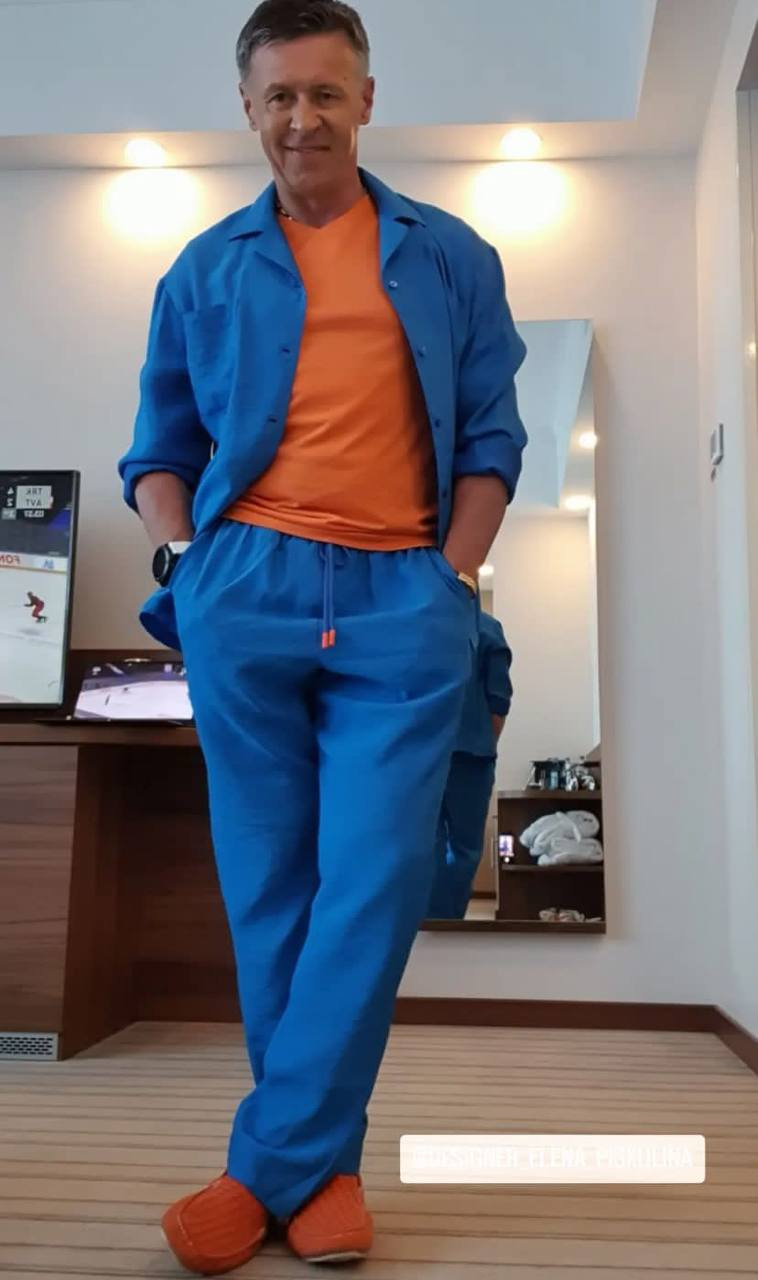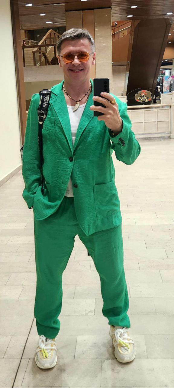 Сергей Исаев может выбрать как классический костюм, так и спортивный образ — и выглядеть гармонично в любом случае. Звезда «Уральских пельменей» — мастер перевоплощения и любит эксперименты, он не боится ярких цветов и нестандартных сочетаний. Например, спокойно надевает ярко-зеленый или ярко-синий костюм, смело сочетая последний с оранжевой футболкой.