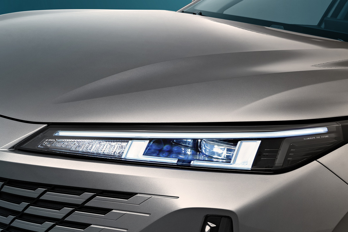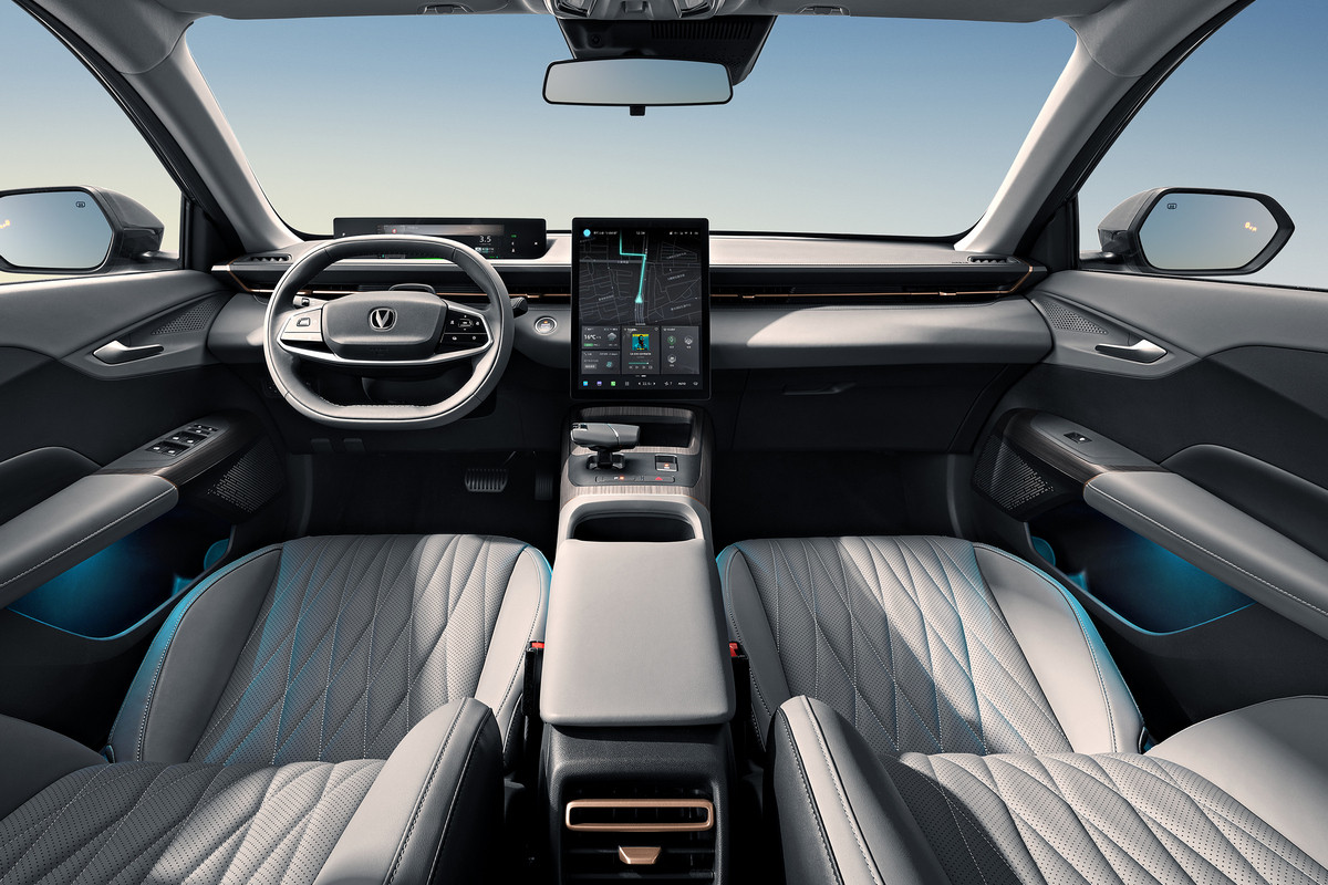 В салоне – 10-дюймовый экран приборки, вертикальный планшет мультимедийной системы диагональю 13,2 дюйма, двухспицевое рулевое колесо и двухэтажный центральный тоннель. Объем багажника – 520 литров.