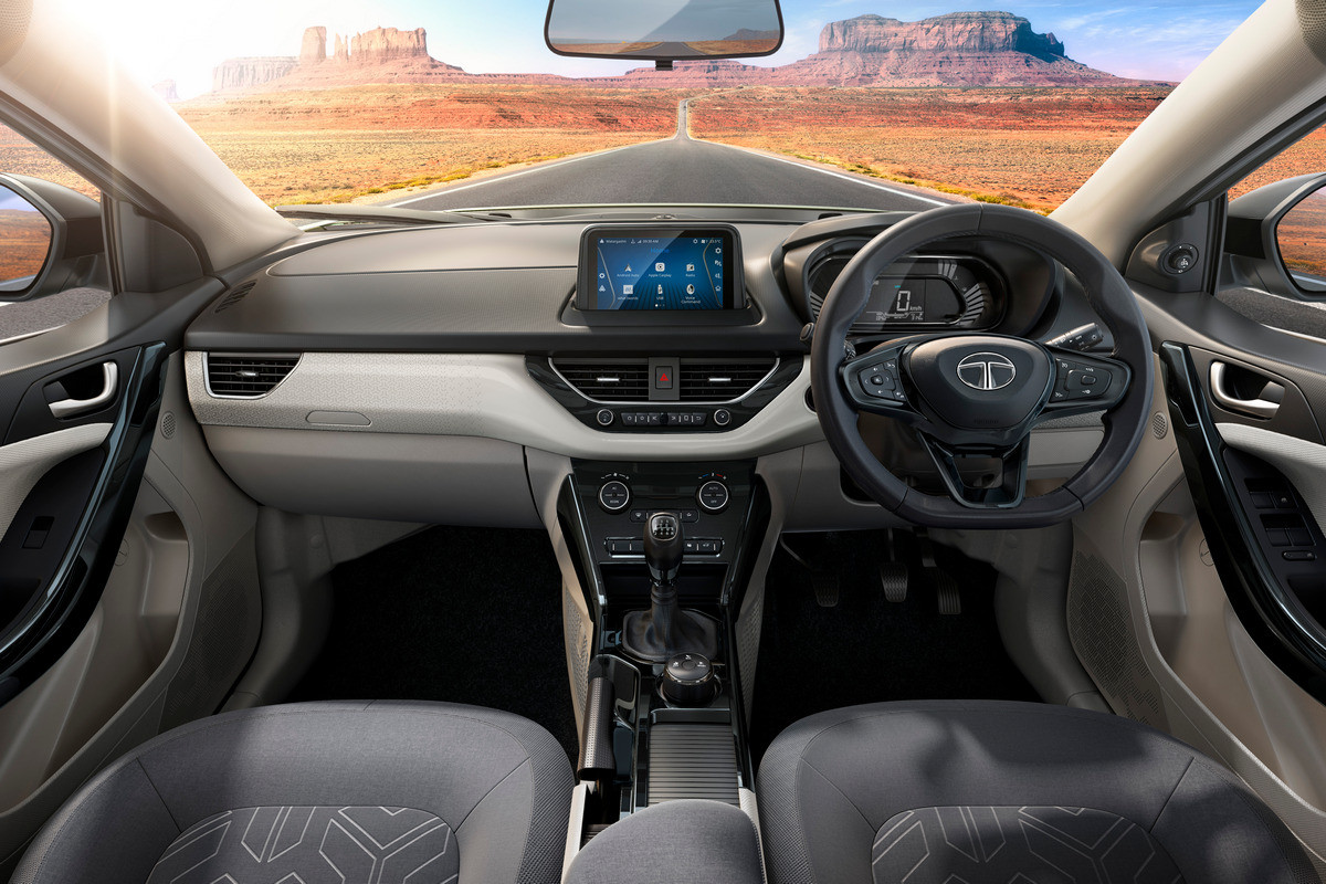 В салоне – иная передняя панель и новое двухспицевое рулевое колесо, другими стали и материалы отделки. «Простые» версии Tata Nexon, как и прежде, имеют мультимедиа-систему с 7-дюймовым экраном, а вот дорогие варианты получили более крупный планшет – диагональю 10,25 дюйма. Среди других обновок для «богатых» исполнений – полноценная виртуальная приборка, сенсорный блок управления климат-контролем и камеры кругового обзора. А еще отныне во всех версиях Nexon есть шесть подушек безопасности.