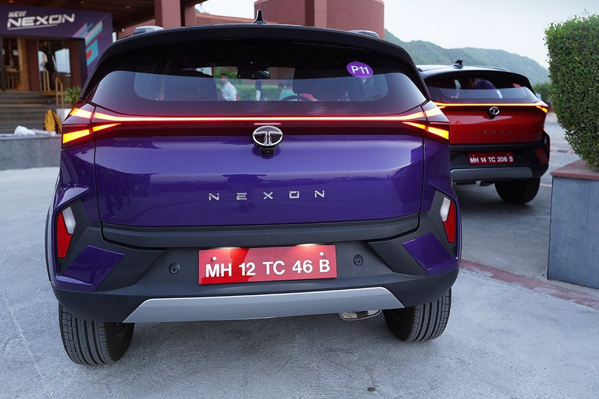 Tata Nexon также обрел агрессивный передний бампер, новые радиаторную решетку и капот. Еще заменили задний бампер и фонари, последние вдобавок соединены между собой функциональной плашкой. Наконец, кросс получил другой спойлер и диски нового дизайна, хотя они все так же исключительно 16-дюймовые.